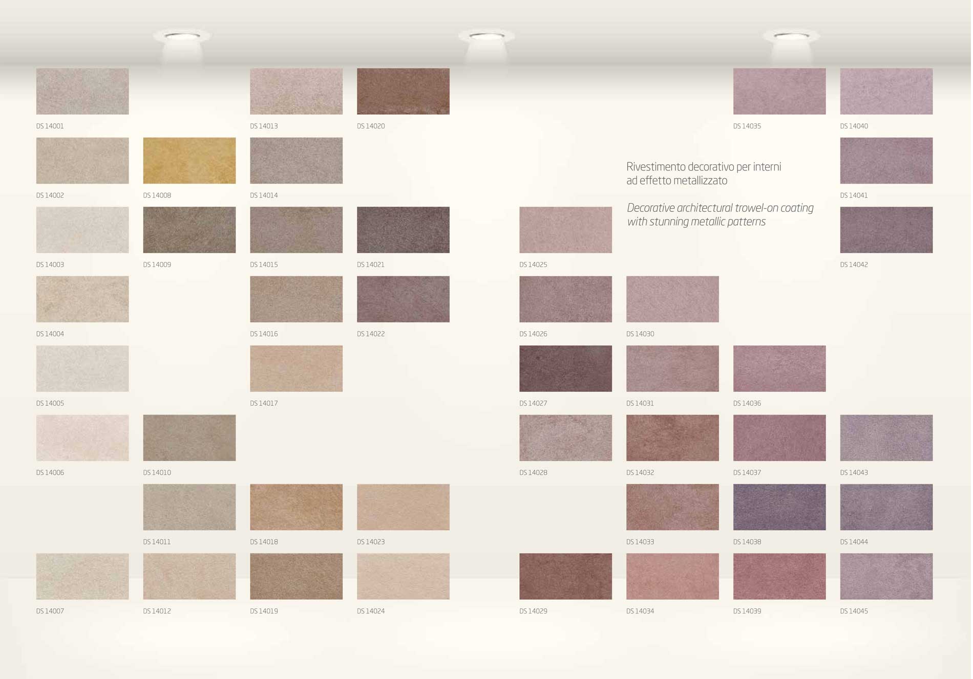 Dune amb efecte metàl·lic, és un acabat molt elegant i luxós, que pot utilitzar per reproduir una gamma gairebé infinita d'efectes tridimensionals, amb sorprenents combinacions. La textura final depèn de la mà i la creativitat de l'aplicador, que pot crear resultats únics i sorprenents.