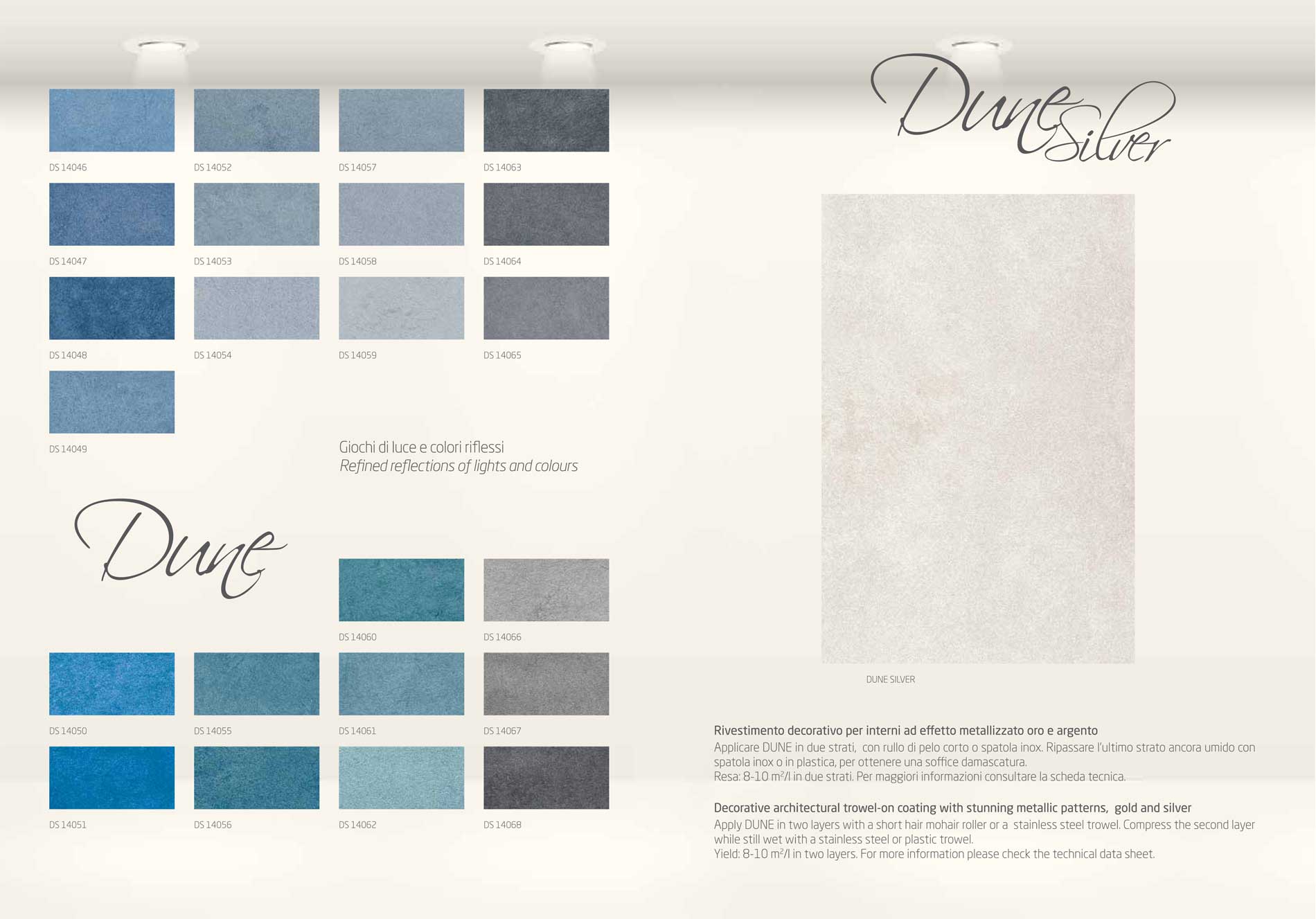 Dune Or i Dune Plata és un acabat per a la decoració d'interiors, a base de càrregues, amb efecte tènuement metal·litzat.